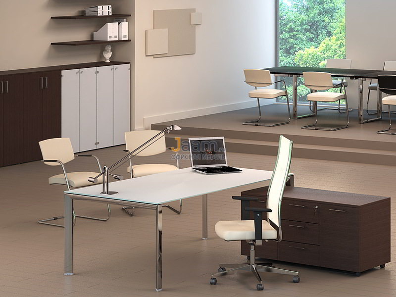 Стол для руководителя стеклянный CRTA200V №14377 - столешница: дсп 25 мм, покрытие: меламин, стекло: тонированное, матовое.| ШxГxВ | 200х100х71 |